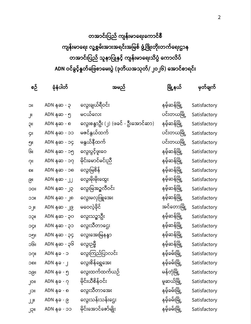 ယခု ဖြေဆိုအောင်မြင်သွားသည့် ကျောင်းသူ/သားများသည် နမ့်ဆန်မြိုနယ် (၁၆)ဦး၊ မန်တုံမြိုနယ် (၆)ဦး၊ နမ့်ခမ်းမြိုနယ် (၇)ဦး၊ ကွတ်ခိုင်မြိုနယ် (၂)ဦး၊ သီပေါမြိုနယ် (၁)ဦး၊ မူဆယ်မြိုနယ် (၂)ဦး၊ အင်တောမြိုနယ် (၁)ဦးနှင့် ပင်းတယမြိုနယ် (၃)ဦးတိုဖြစ်ကြသည်။
