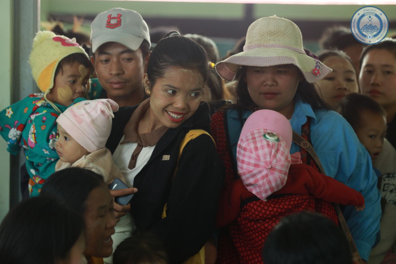 တအာင်းပြည်၊ နမ့်ဆန်ခရိုင်၊ မိုင်းငေါ့မြိုတွင် တအာင်းပြည် ကျန်းမာရေးကောင်စီ (THC) မှ အသက် (၅) နှစ်အောက် ကလေးငယ်များနှင့် ကိုယ်ဝန်ဆောင်မိခင်များအား ကာကွယ်ဆေးအမျိုးအစားအလိုက် ထိုးနှံပေးခဲ့သည့် မြင်ကွင်းဖြစ်ပါသည်။
