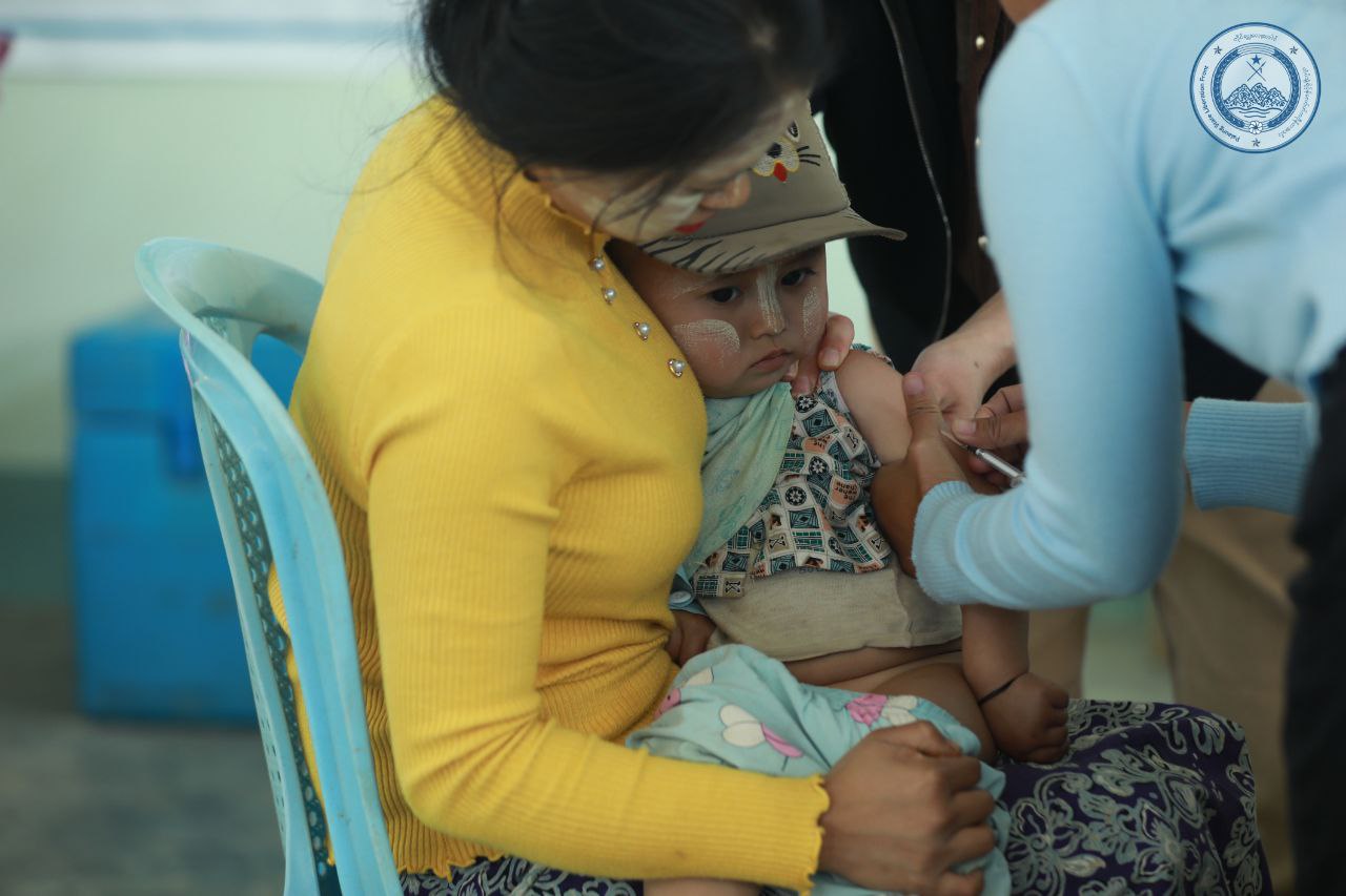 တအာင်းပြည် ကျန်းမာရေးကောင်စီ-THC မှ အသက် (၅)နှစ်အောက် ကလေးငယ်နှင့် ကိုယ်ဝန်ဆောင်မိခင်များ ကာကွယ်ဆေး ထိုးနှံပေးသည့်မြင်ကွင်း