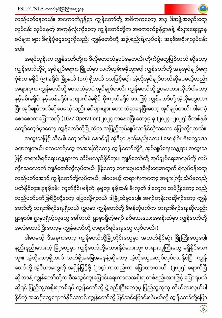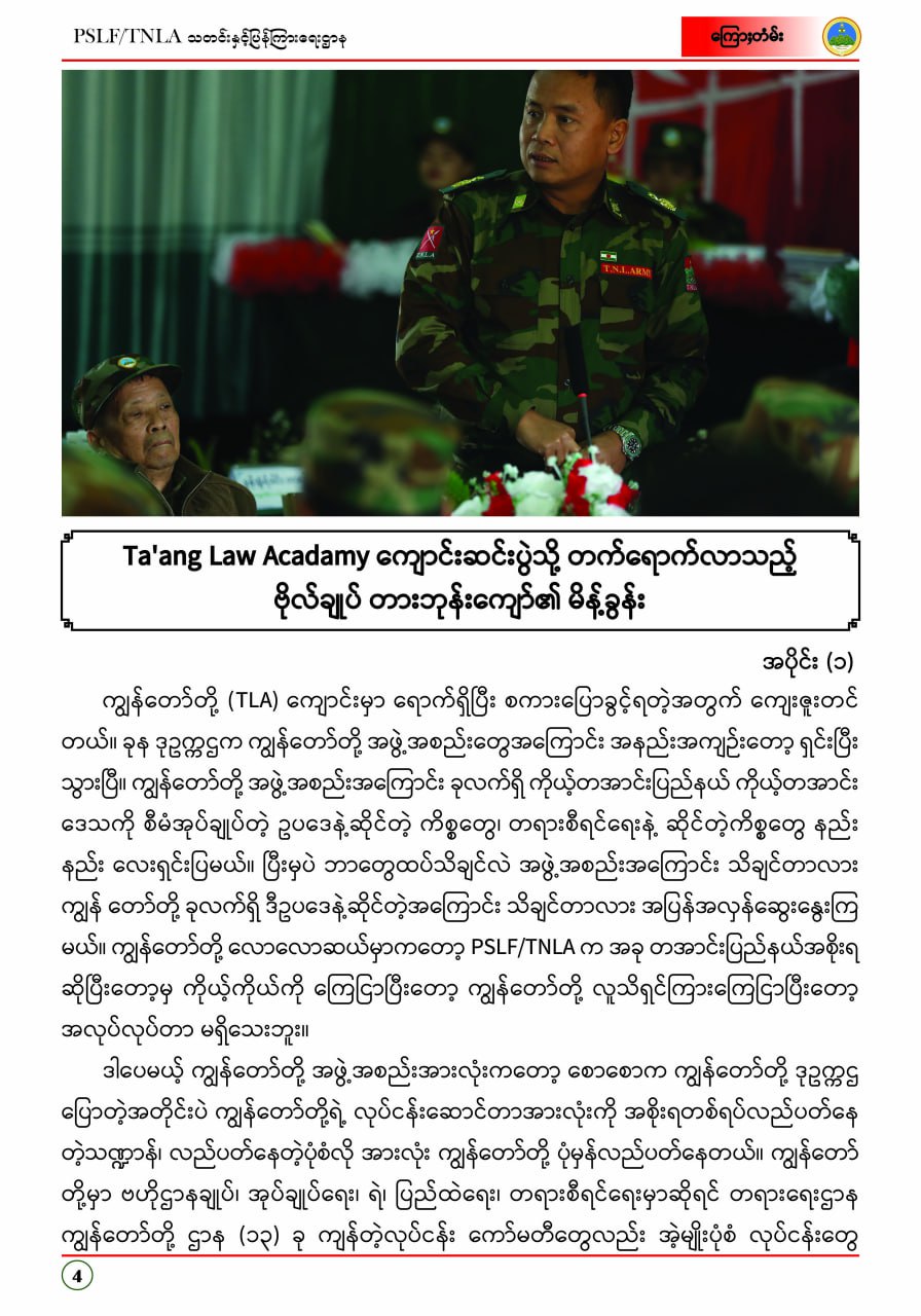 ပလောင်ပြည်နယ်လွတ်မြောက်ရေးတပ်ဦး PSLF/TNLA သတင်းနှင့်ပြန်ကြားရေးဌာန စက်တင်ဘာလ ထုတ်စာစောင် တအာင်းပြည်၊ အောက်တိုဘာလ၊၂၀၂၅ ခုနှစ်