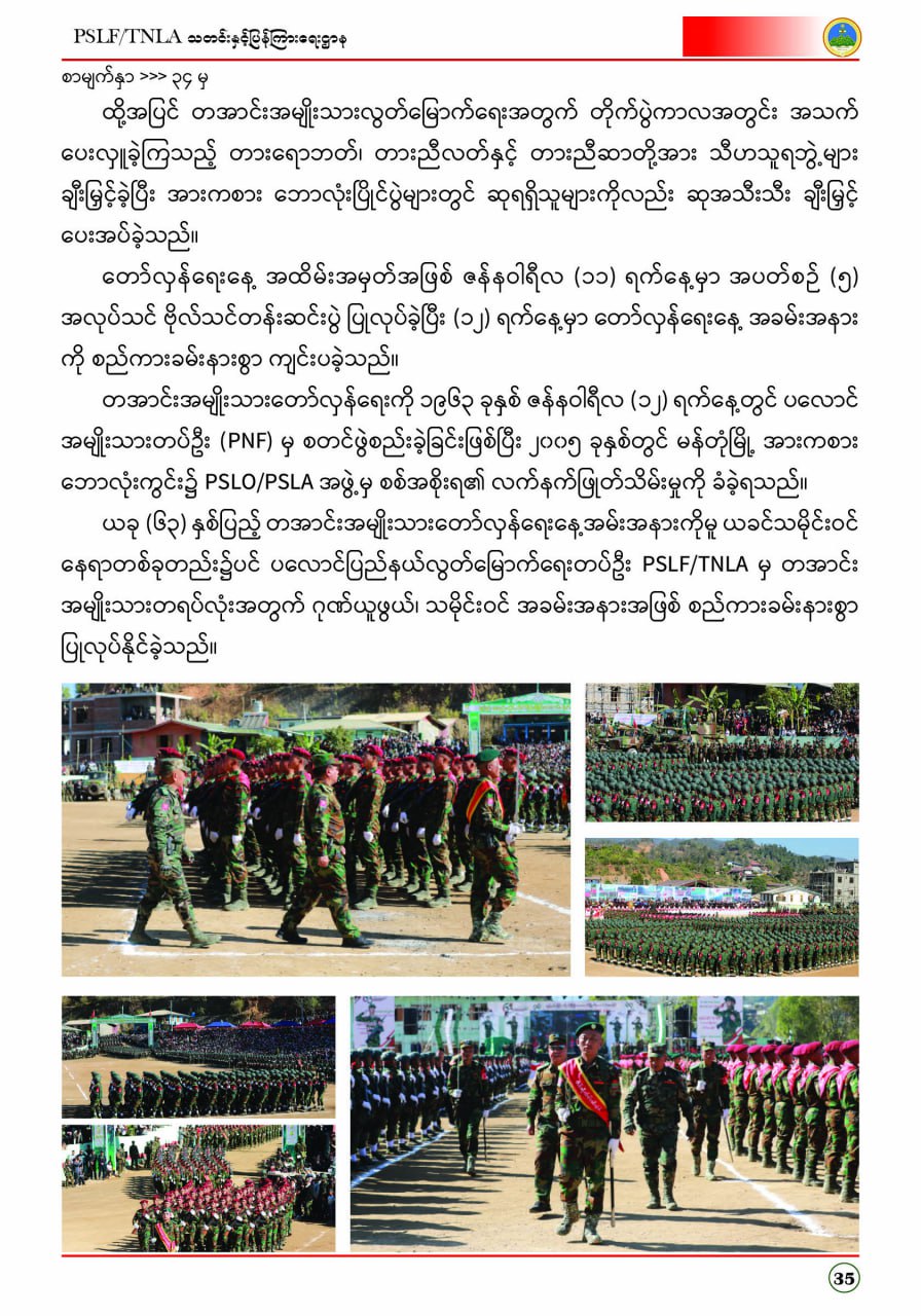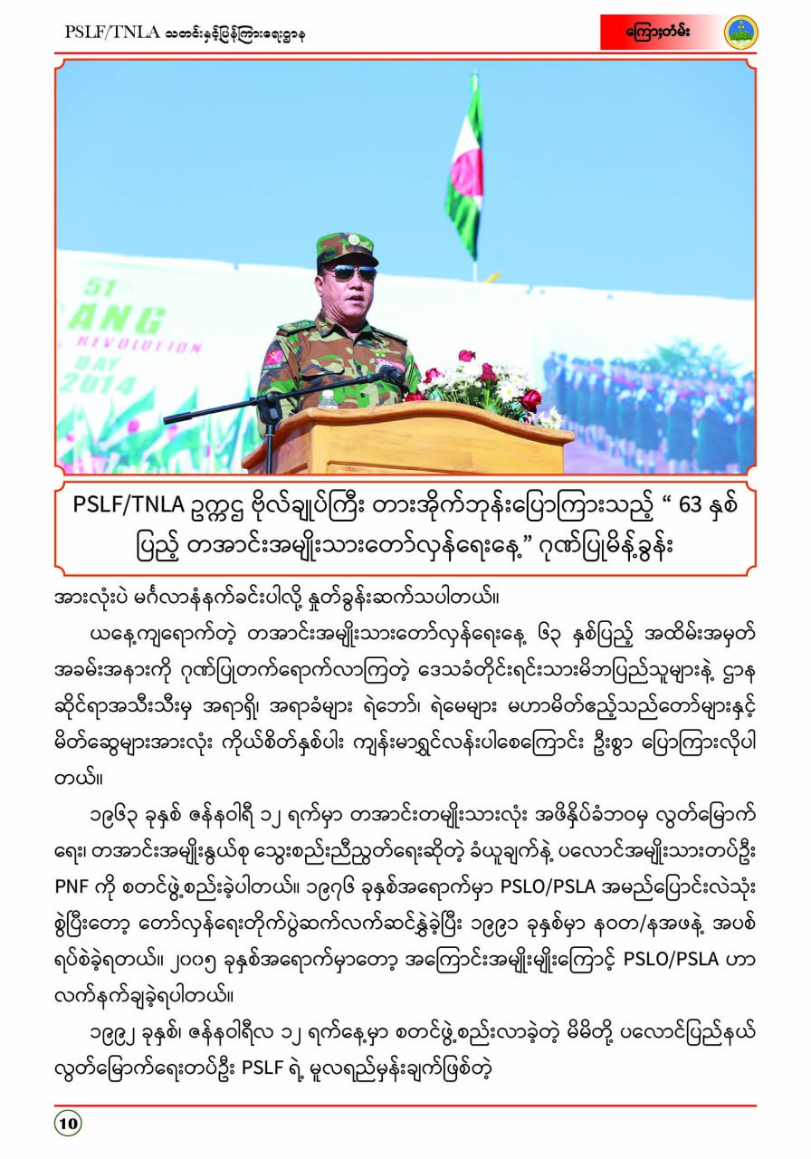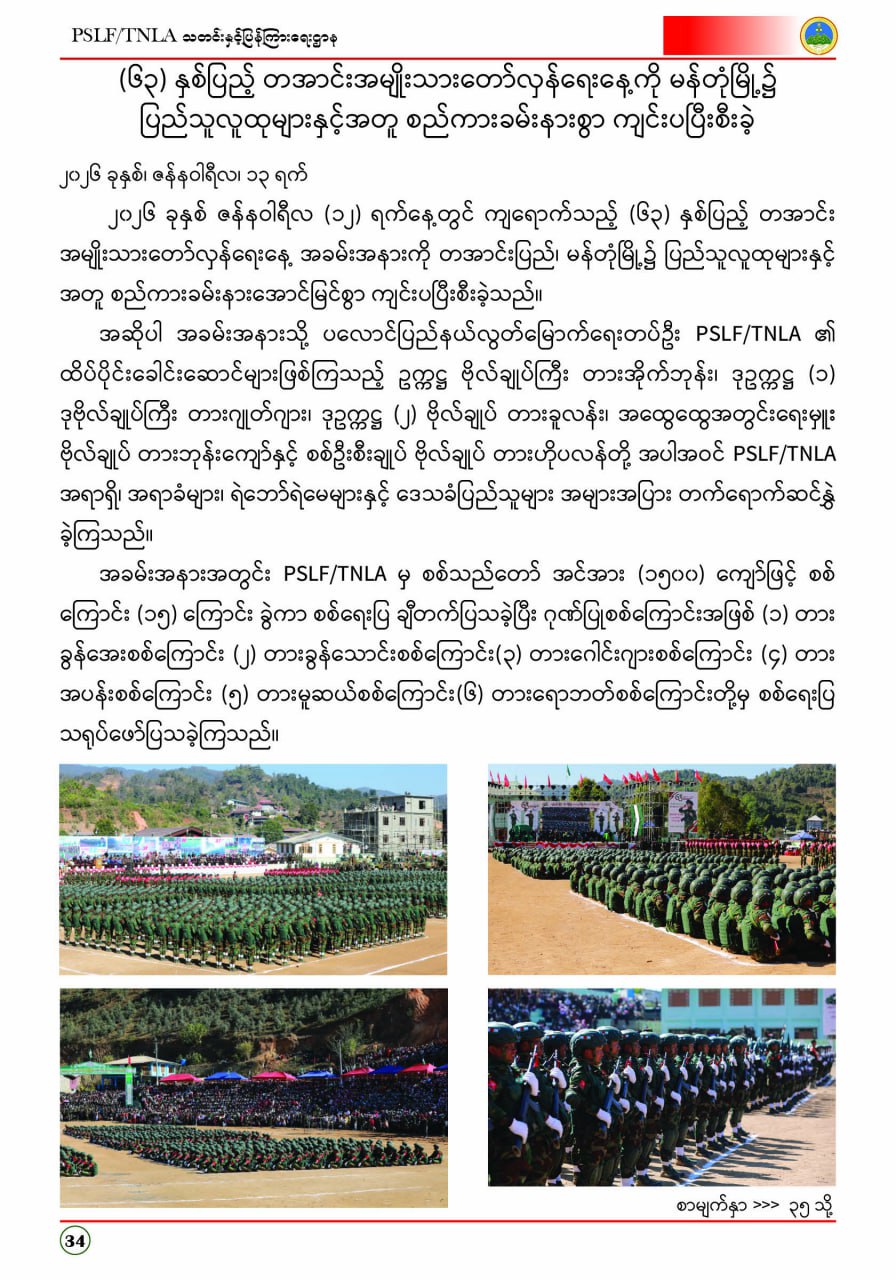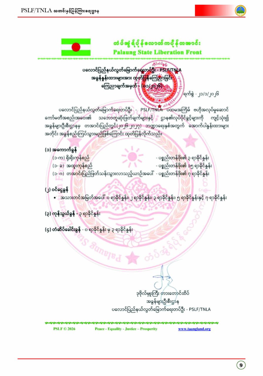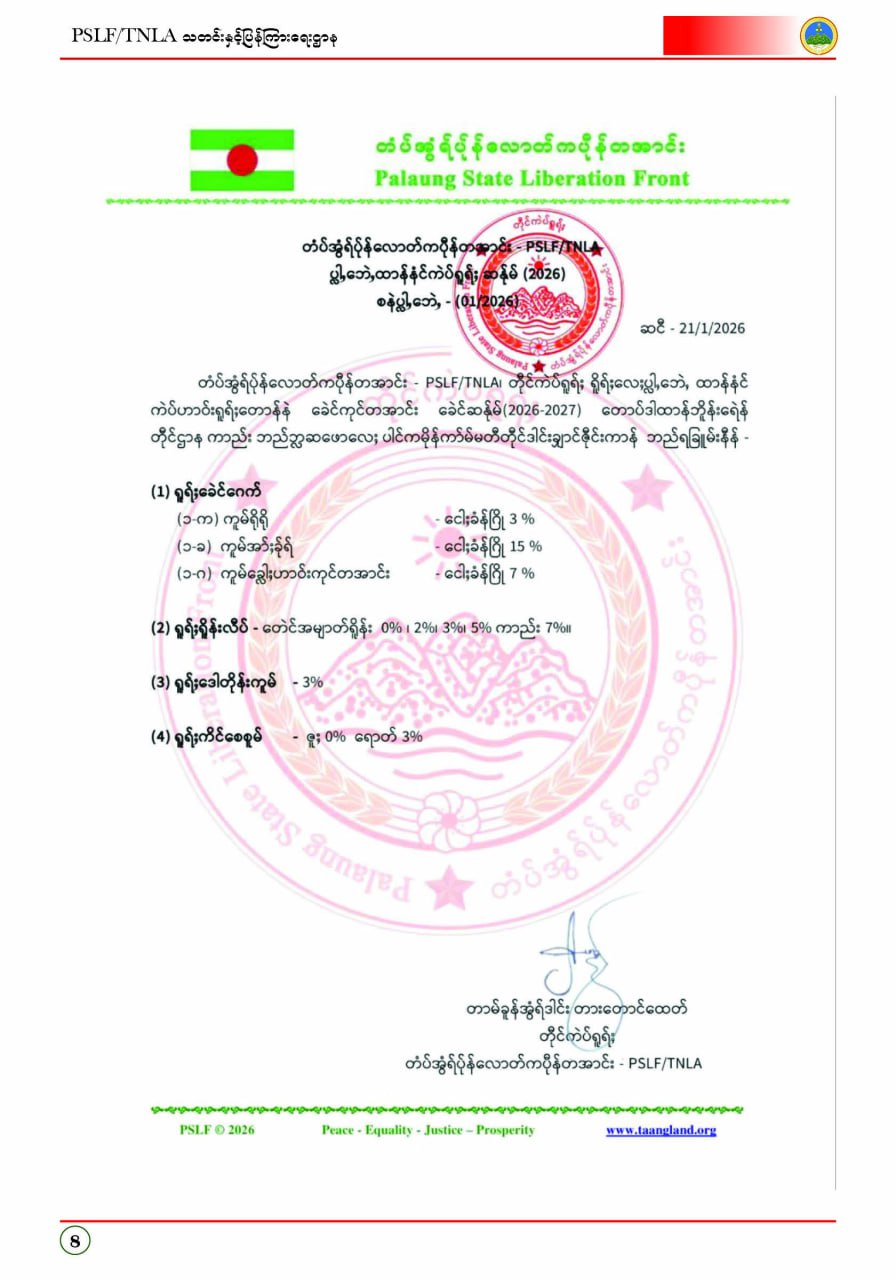 ပလောင်ပြည်နယ်လွတ်မြောက်ရေးတပ်ဦး PSLF/TNLA သတင်းနှင့်ပြန်ကြားရေးဌာန ဇန်နဝါရီလထုတ်စာစောင် တအာင်းပြည်၊ ဖေဖော်ဝါရီ၊ ၂၀၂၆ခုနှစ်