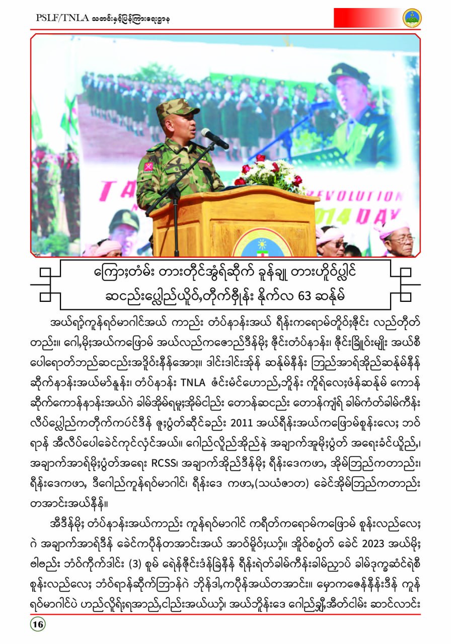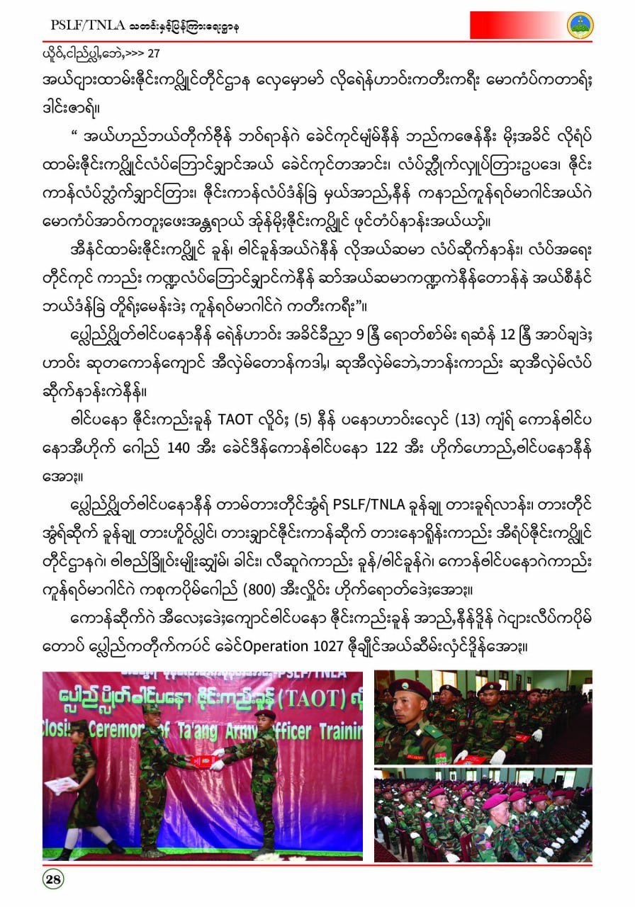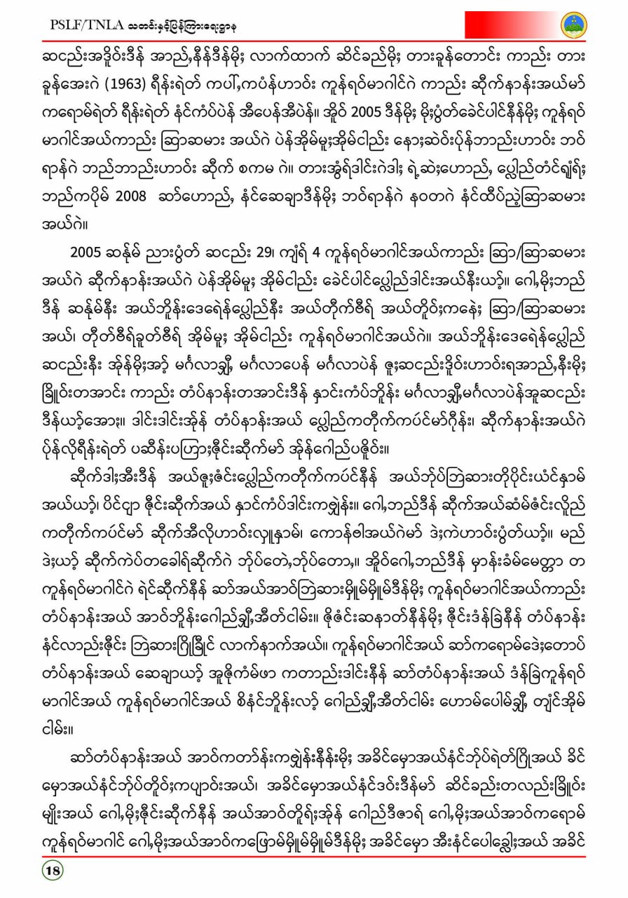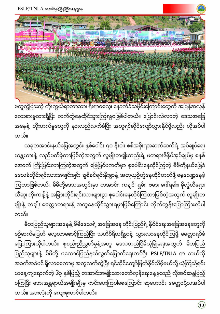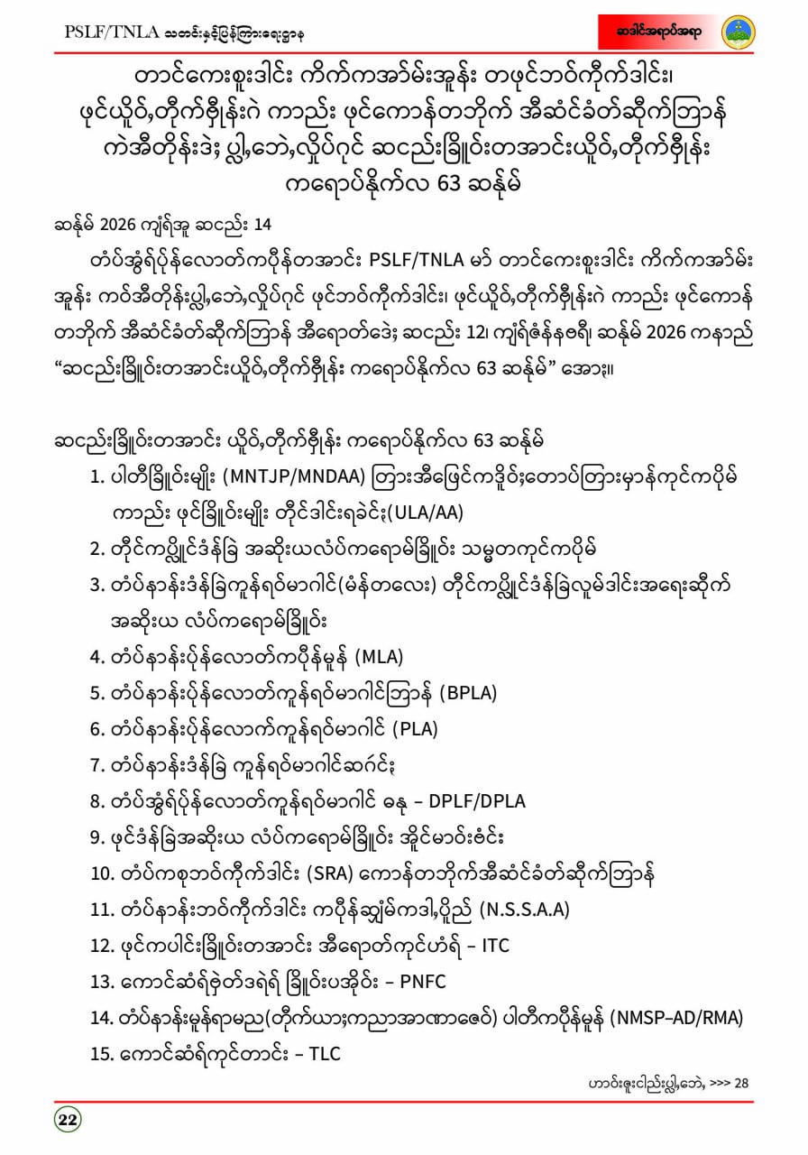 ပလောင်ပြည်နယ်လွတ်မြောက်ရေးတပ်ဦး PSLF/TNLA သတင်းနှင့်ပြန်ကြားရေးဌာန ဇန်နဝါရီလထုတ်စာစောင် တအာင်းပြည်၊ ဖေဖော်ဝါရီ၊ ၂၀၂၆ခုနှစ်