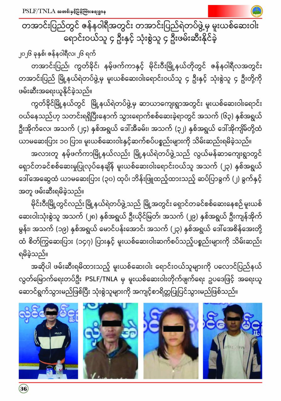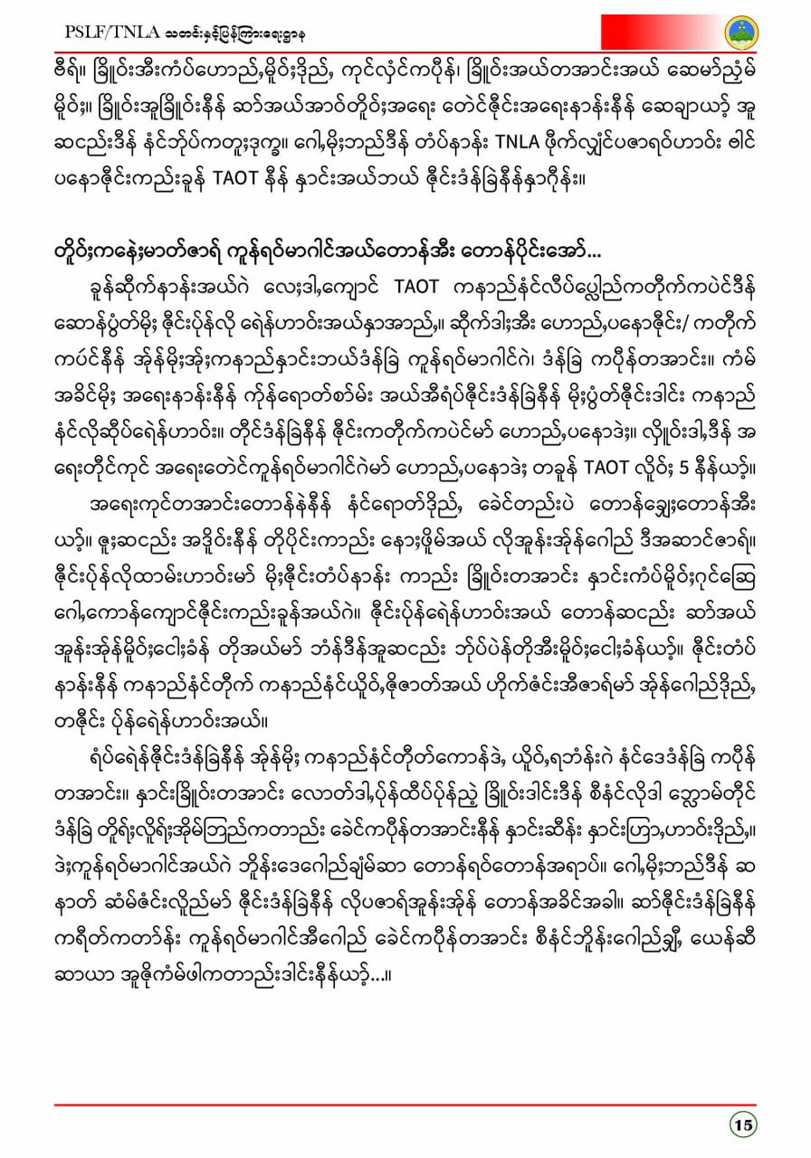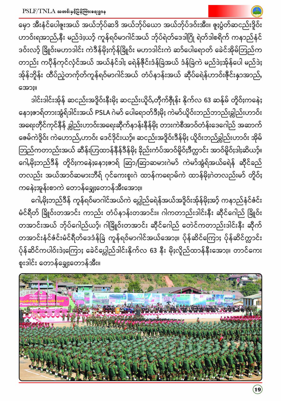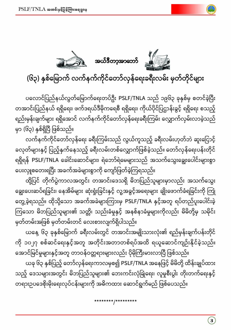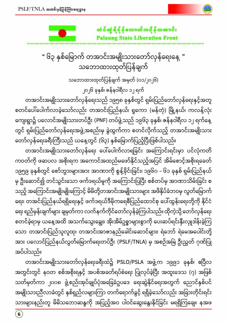 ပလောင်ပြည်နယ်လွတ်မြောက်ရေးတပ်ဦး PSLF/TNLA သတင်းနှင့်ပြန်ကြားရေးဌာန ဇန်နဝါရီလထုတ်စာစောင် တအာင်းပြည်၊ ဖေဖော်ဝါရီ၊ ၂၀၂၆ခုနှစ်