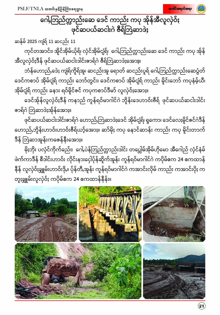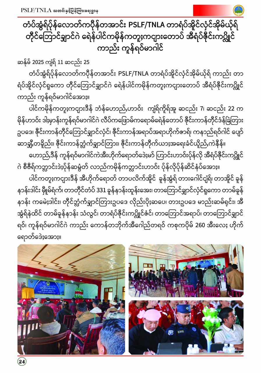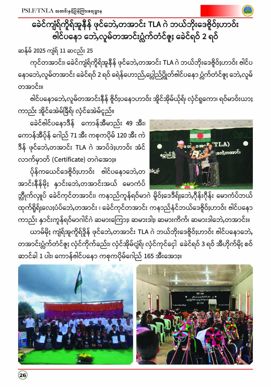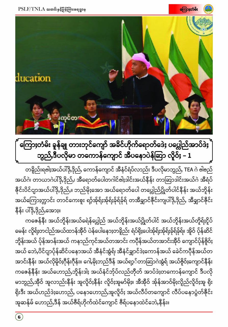ပလောင်ပြည်နယ်လွတ်မြောက်ရေးတပ်ဦး PSLF/TNLA သတင်းနှင့်ပြန်ကြားရေးဌာန နိုဝင်ဘာလထုတ်စာစောင်