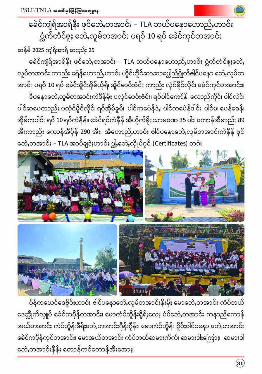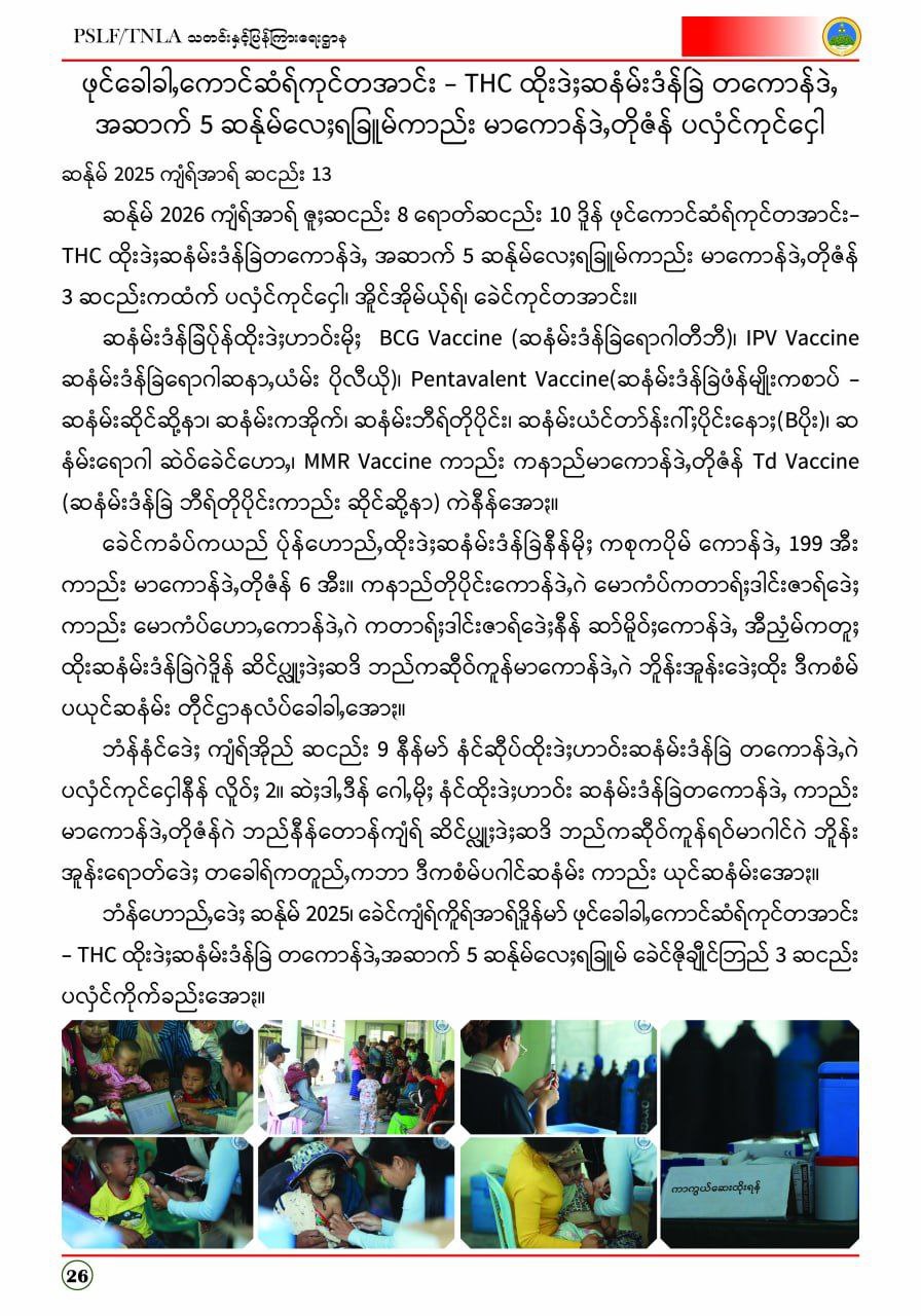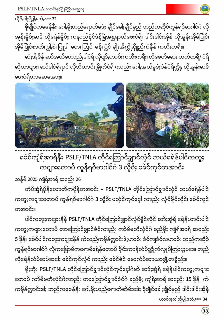 ဟောည်ႇဘိူန်းဒီရ်ႈ ပံပ်ဘေဲႇ ပ်ုန်ထုက်ရိူရ်ႈလေႈ PSLF/TNLAတီုင်ပ္လေႈလေႈဆဒါင် ခေဲင်ဆန်ုမ်2026၊ ကျံရ်အာရ်အောႏ