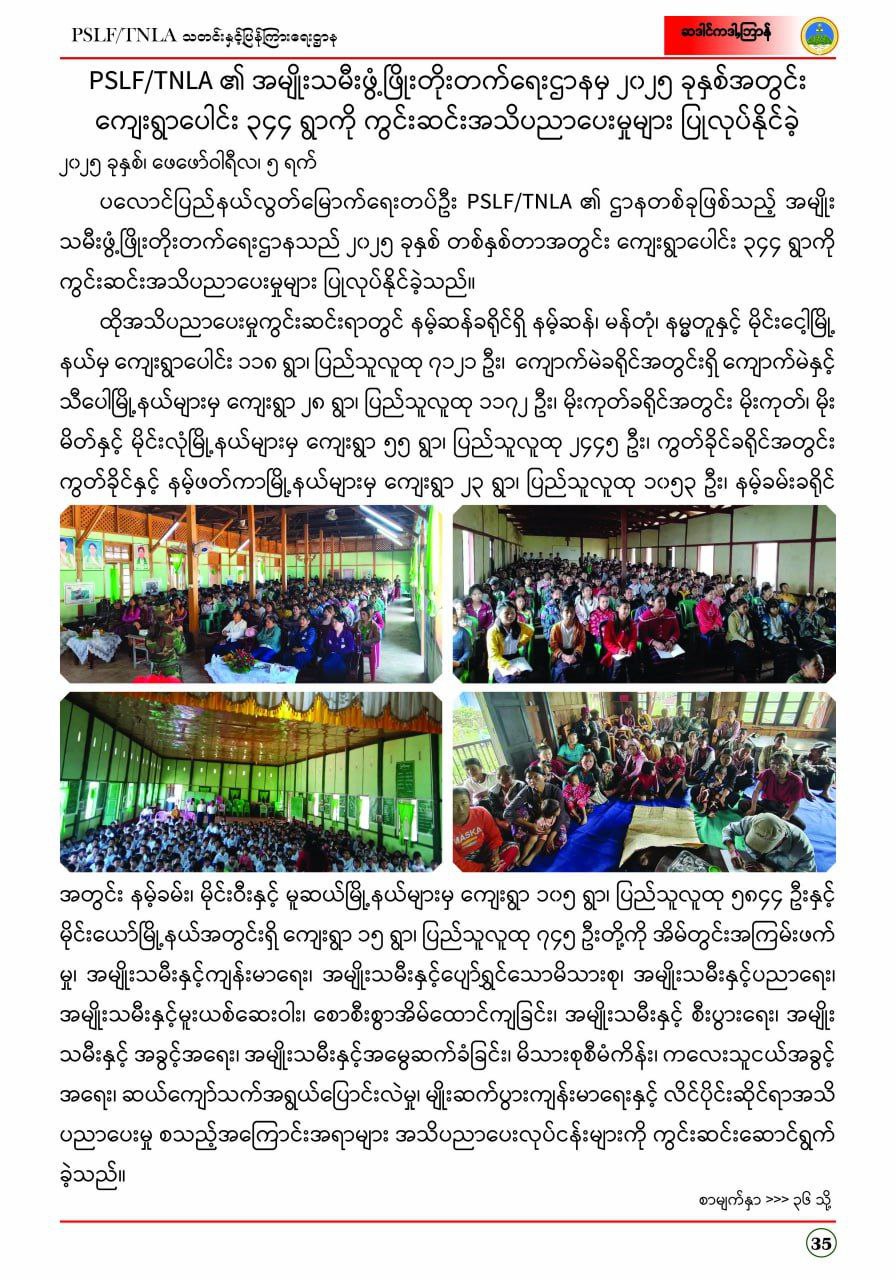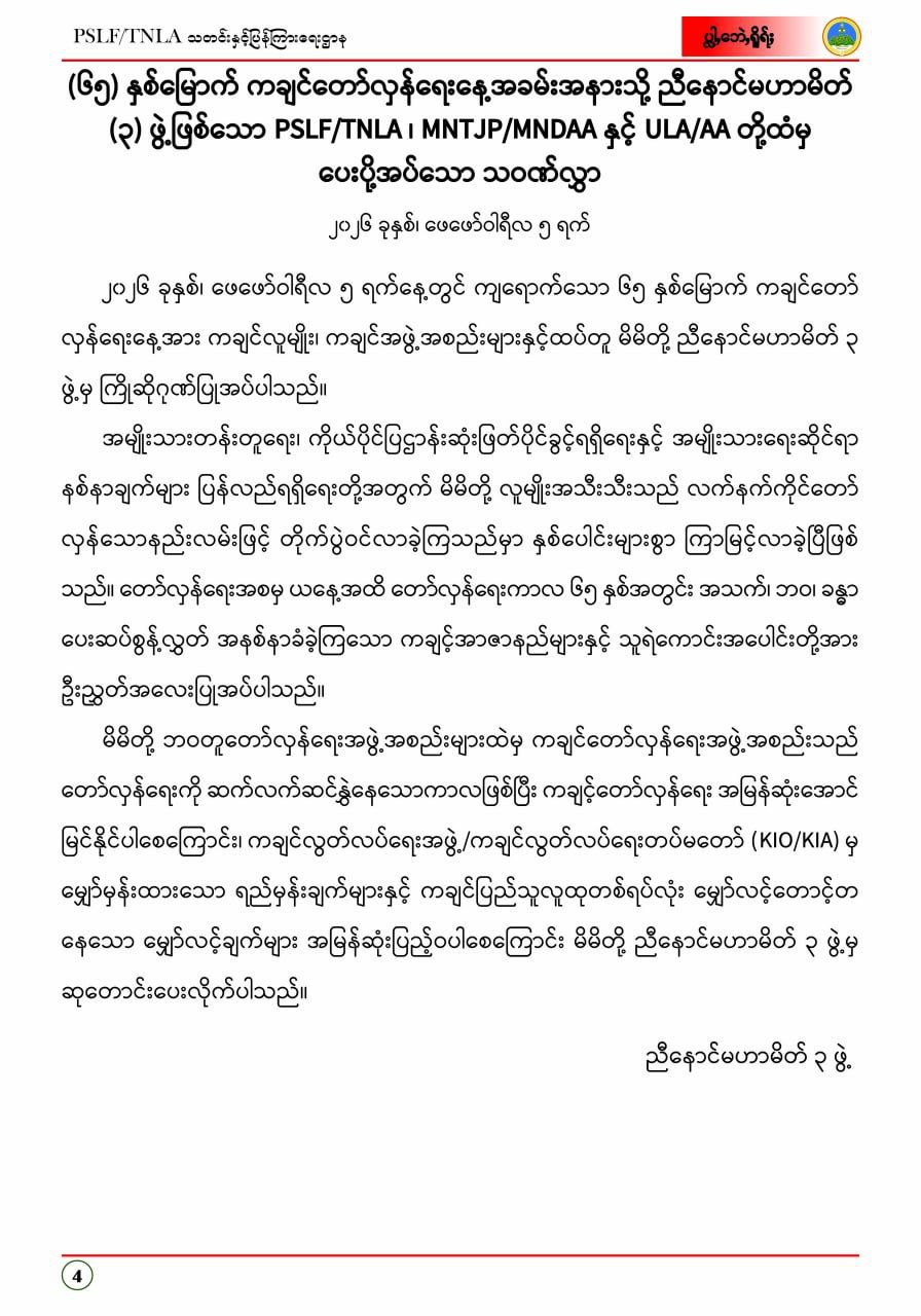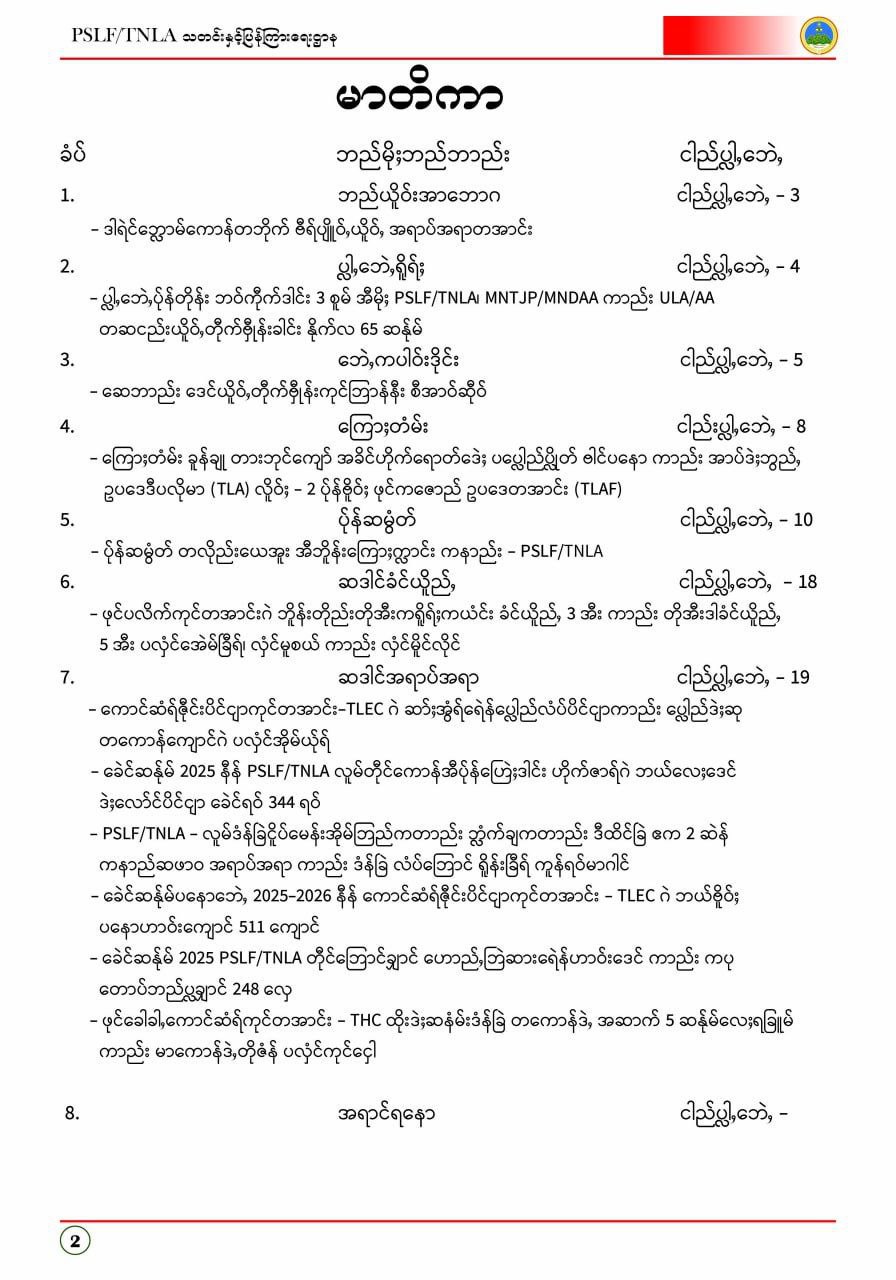 ဟောည်ႇဘိူန်းဒီရ်ႈ ပံပ်ဘေဲႇ ပ်ုန်ထုက်ရိူရ်ႈလေႈ PSLF/TNLAတီုင်ပ္လေႈလေႈဆဒါင် ခေဲင်ဆန်ုမ်2026၊ ကျံရ်အာရ်အောႏ