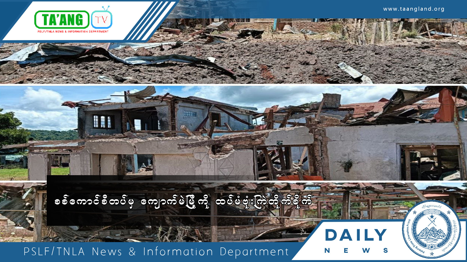 တော့ဆန်ရွာမအား စစ်ကောင်စီတပ်မှ လေကြောင်းဖြင့် ဗုံးကြဲ၊ နေအိမ် (၂)အိမ်နှင့် ဇရပ်ဆောင် ထိမှန်ပျက်စီး