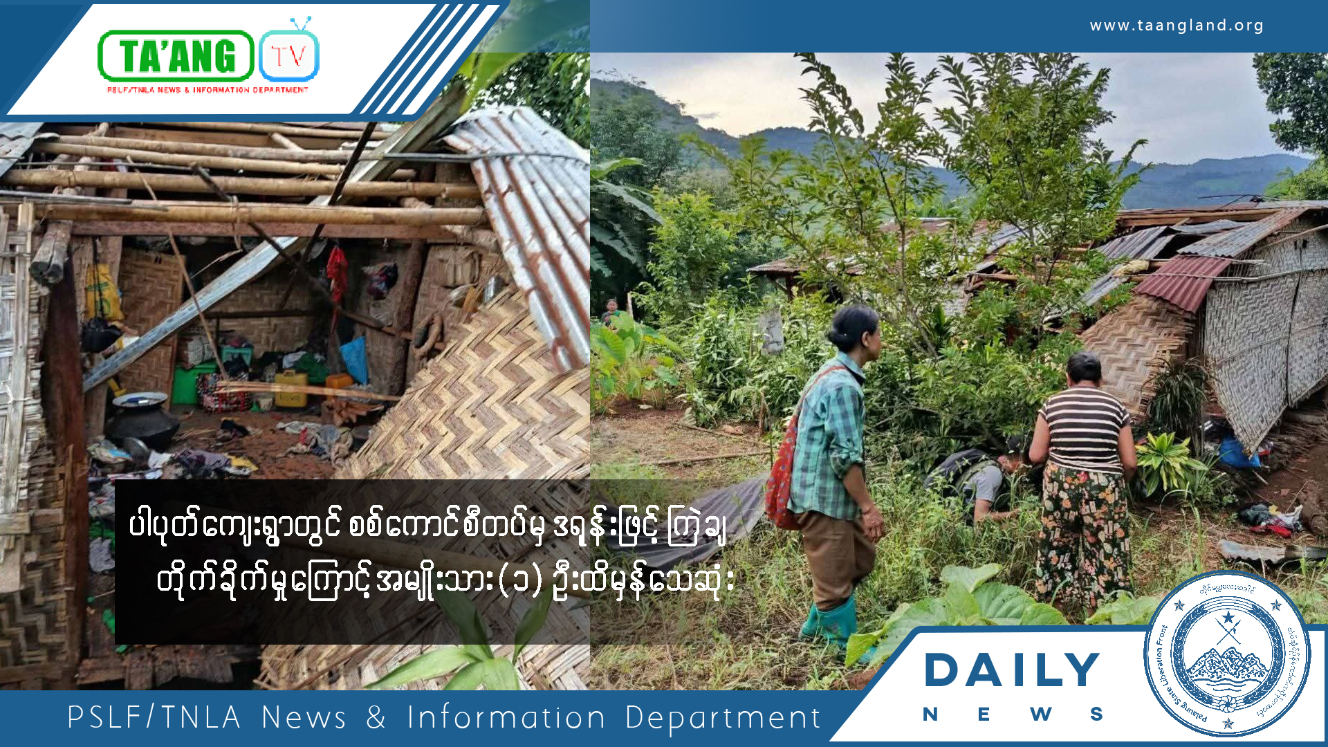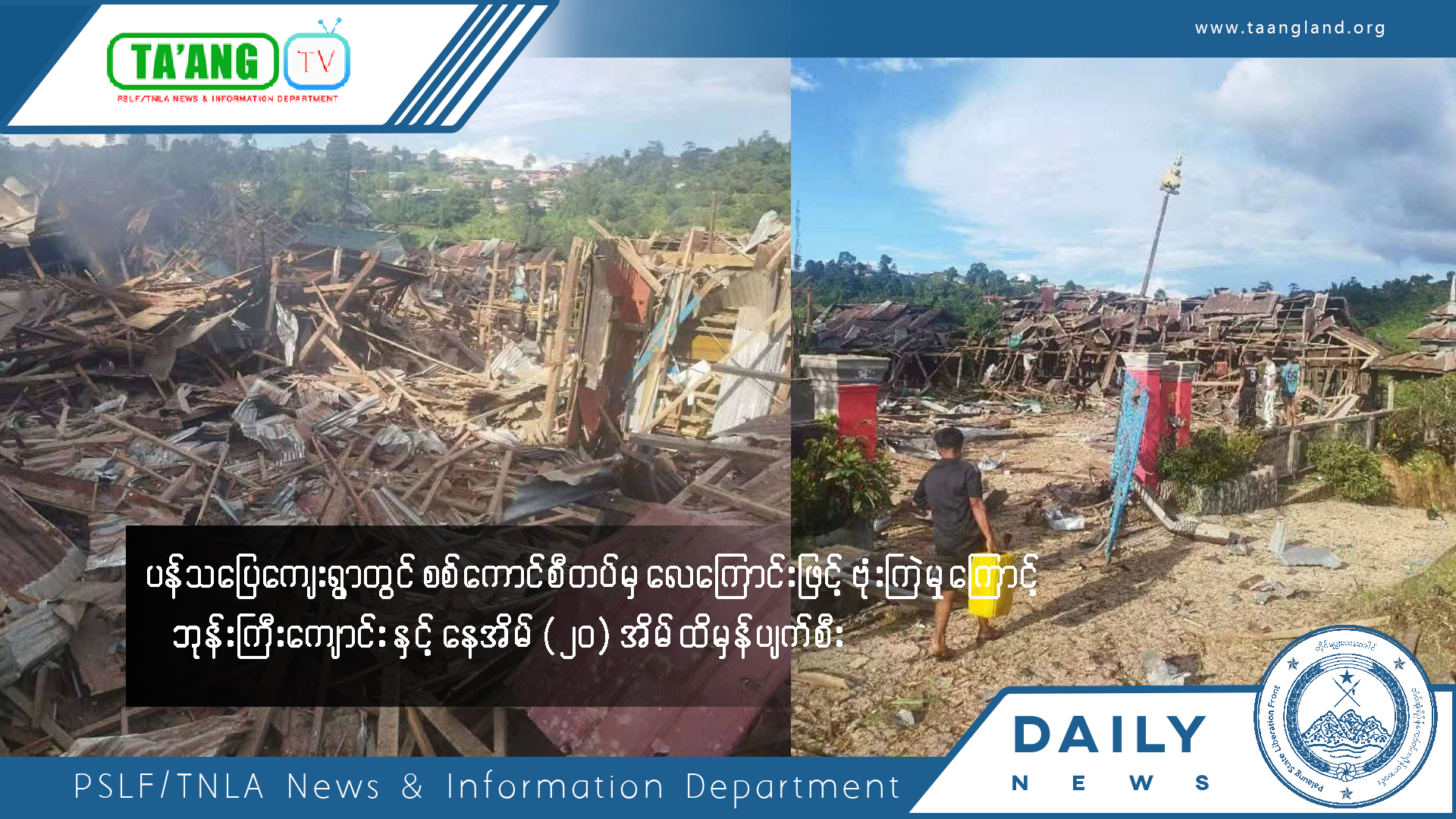 ပန်သပြေကျေးရွာတွင်စစ်ကောင်စီတပ်မှဗုံးကြဲတိုက်ခိုက်မှုကြောင့် နေအိမ် (၂၀)အိမ်ထိမှန်ပျက်စီး