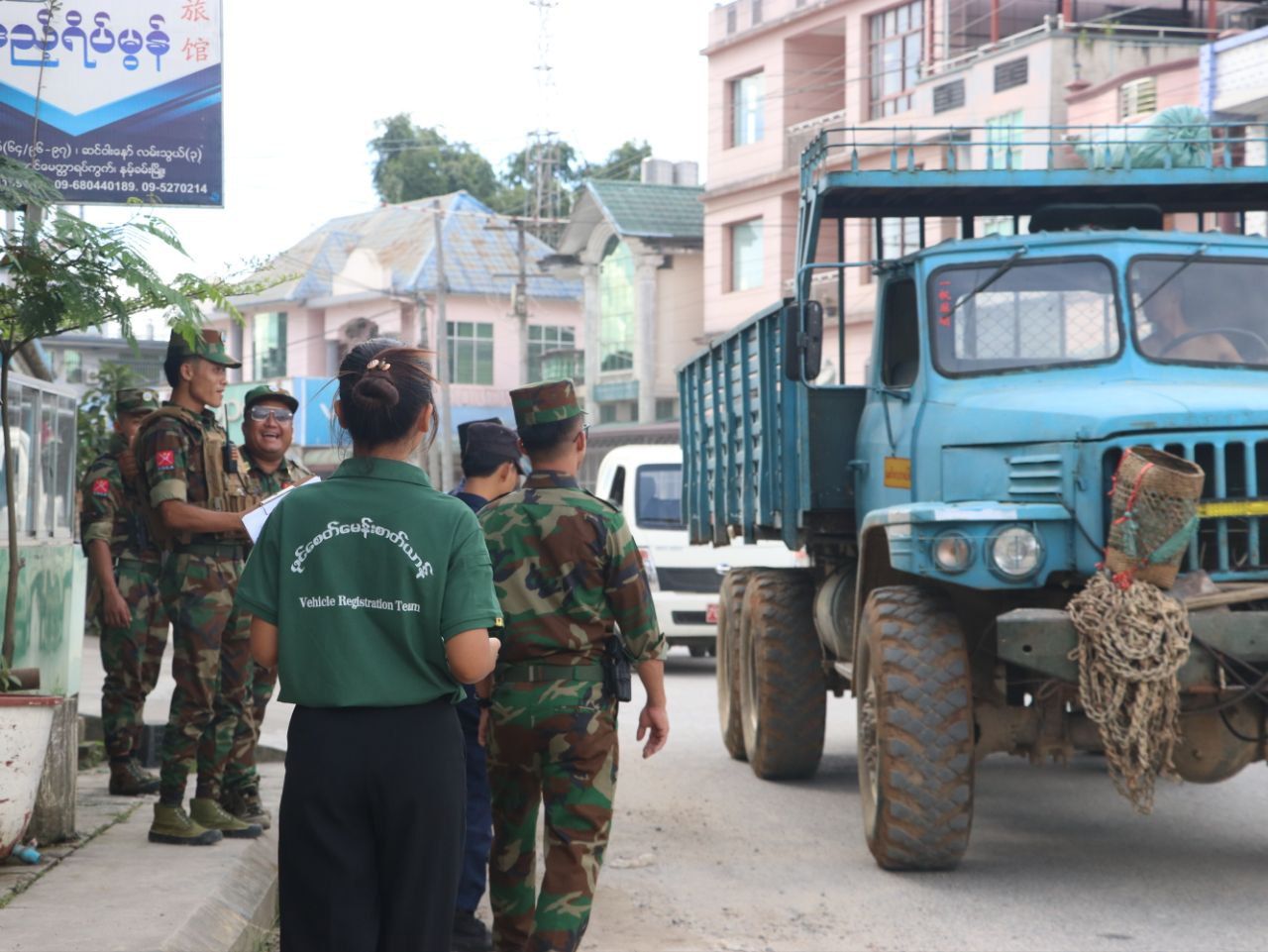 တအာင်းပြည်၊ တပ်မဟာ (၆)နယ်မြေ၊ နမ့်ခမ်းမြို့တွင် ပလောင်ပြည်နယ်လွတ်မြောက်ရေးတပ်ဦး PSLF/TNLA မော်တော်ယာဥ်မှတ်ပုံတင်ကြီးကြပ်ရေးဌာနမှ မော်တော်ယာဥ်များအား မှတ်ပုံတင်လိုင်စင်များ ပြုလုပ်ခြင်းရှိမရှိ စစ်ဆေးမှုပြုလုပ်ဆောင်ရွက်ခဲ့သည်။