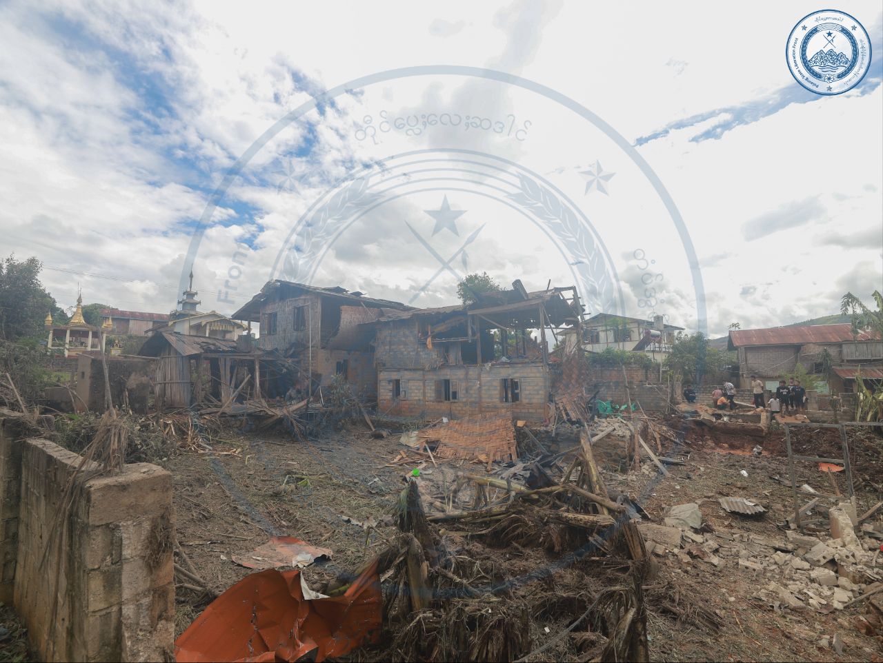 စစ်ကောင်စီတပ်သည် ယနေ့ နံနက်ပိုင်းအချိန်တွင် တအာင်းပြည်၊ နမ္မတူမြို့၊ ပုဗ္ဗာရုံဘုန်းကြီးကျောင်းအနီးရှိ ပြည်သူလူထုများ၏ နေအိမ်ကို လေကြောင်းဖြင့် ဗုံးကြဲချမှုကြောင့် အပျက်အစီးများ မြင်တွေ့နေရသည့် မြင်ကွင်းဖြစ်ကြပါသည်။