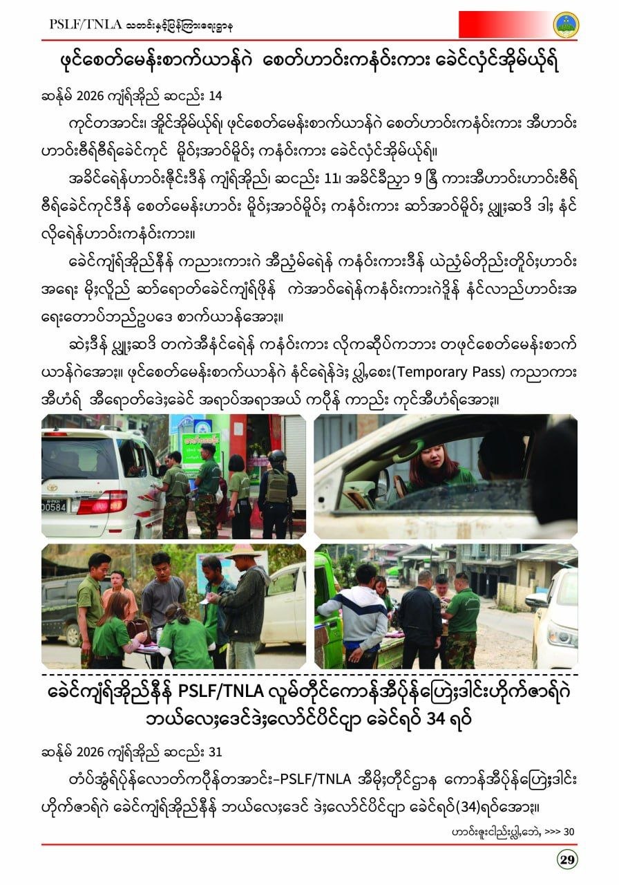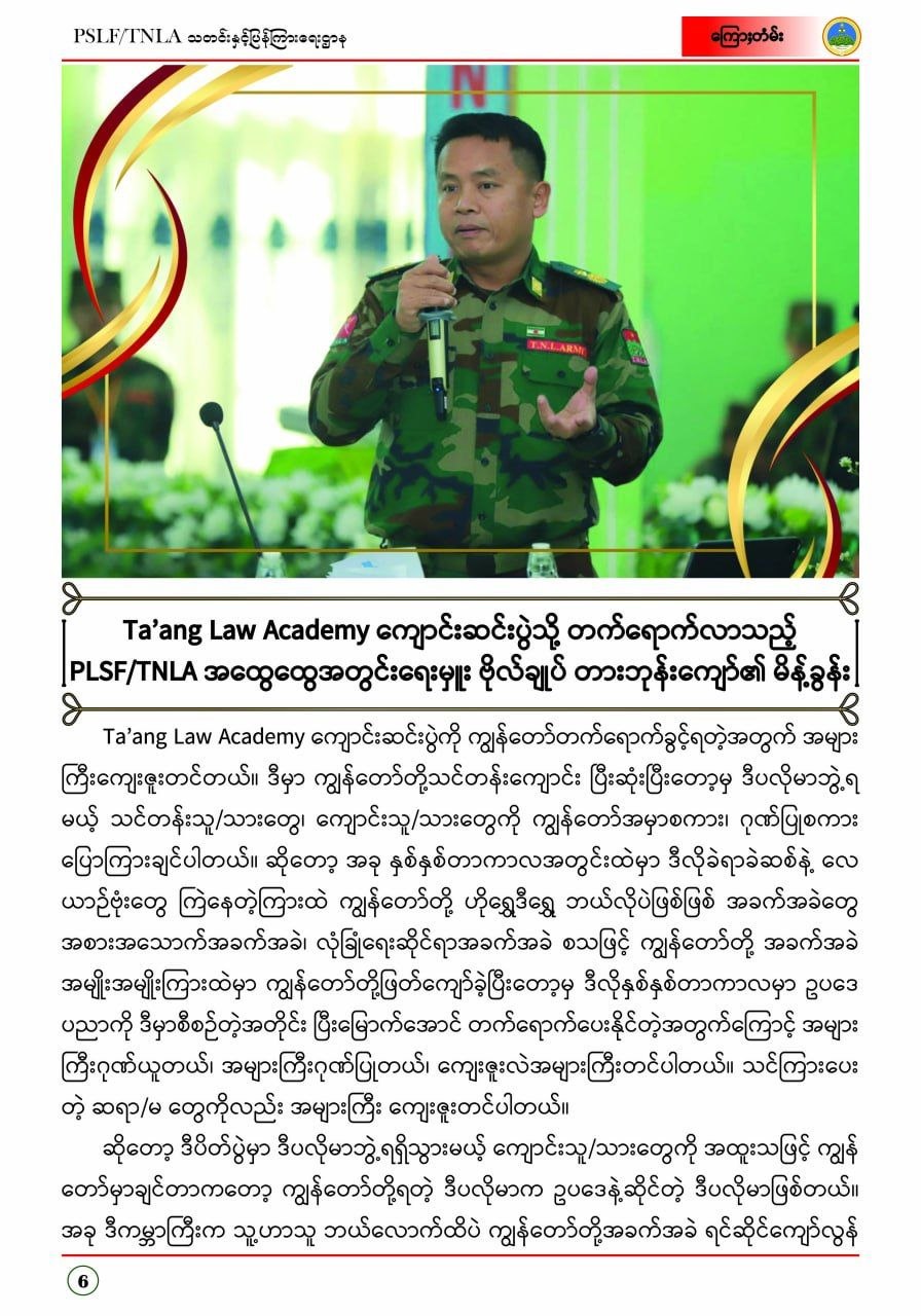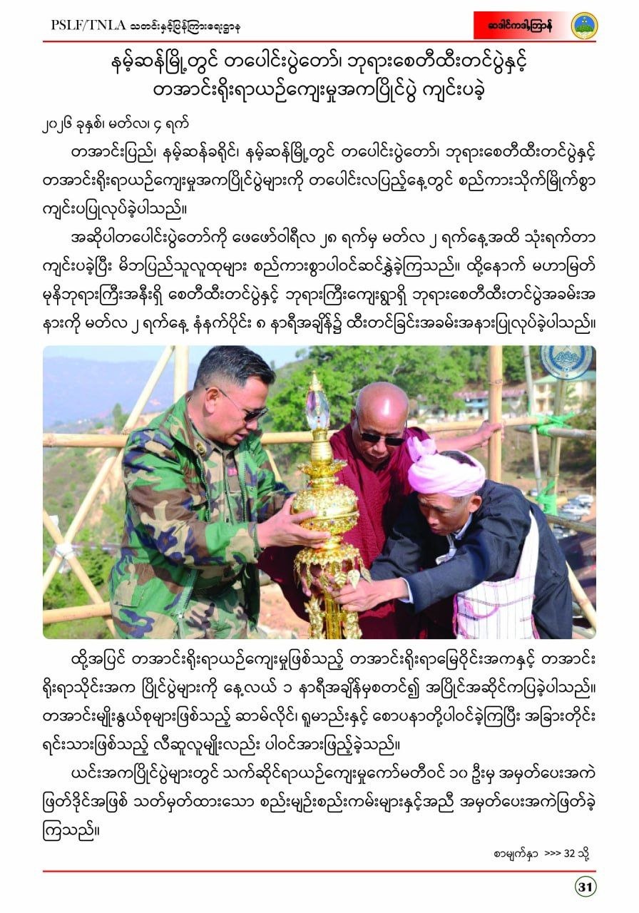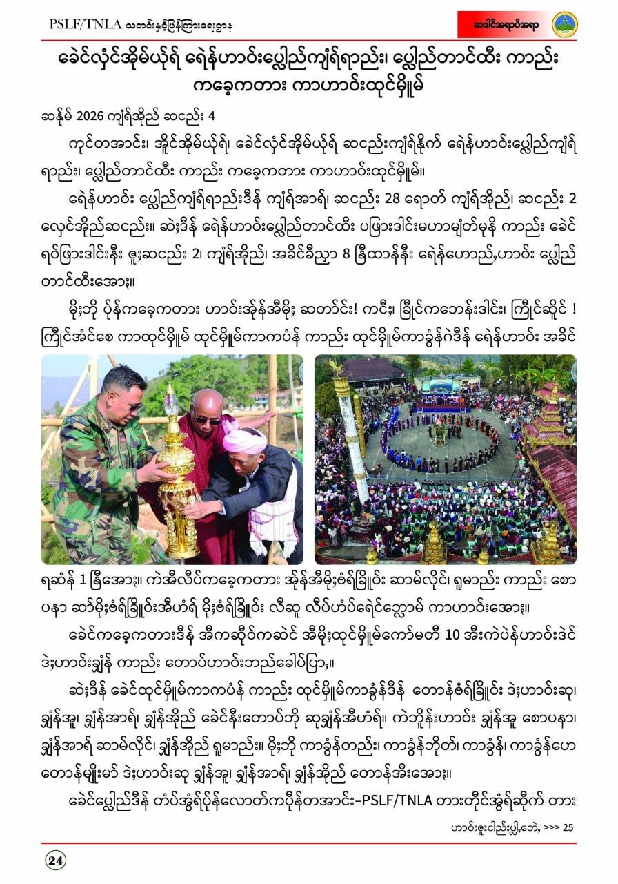 ပလောင်ပြည်နယ်လွတ်မြောက်ရေးတပ်ဦး PSLF/TNLA သတင်းနှင့်ပြန်ကြားရေးဌာန မတ်လထုတ်စာစောင် တအာင်းပြည်၊ ဧပြီ၊ ၂၀၂၆ခုနှစ်