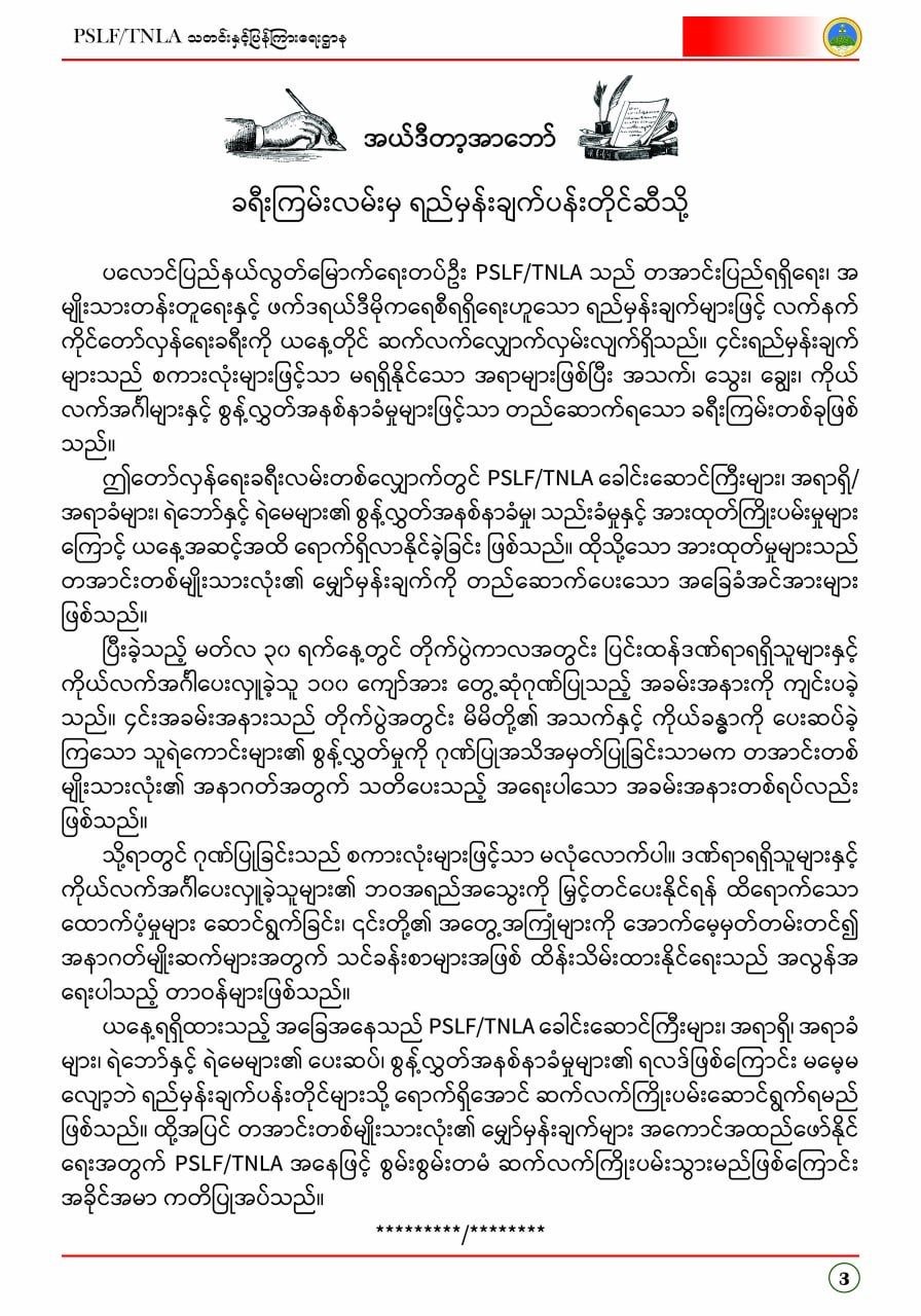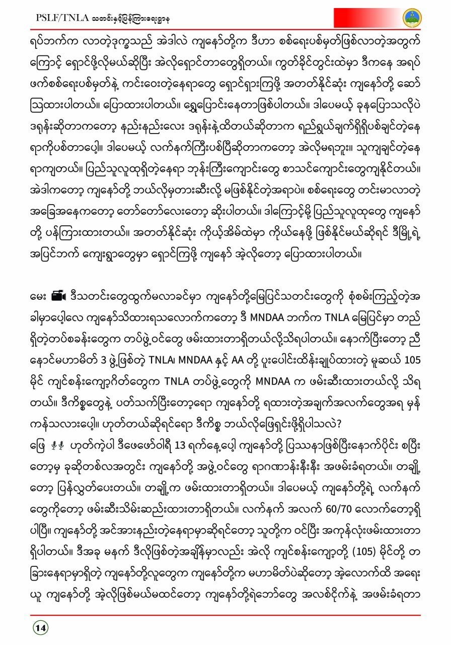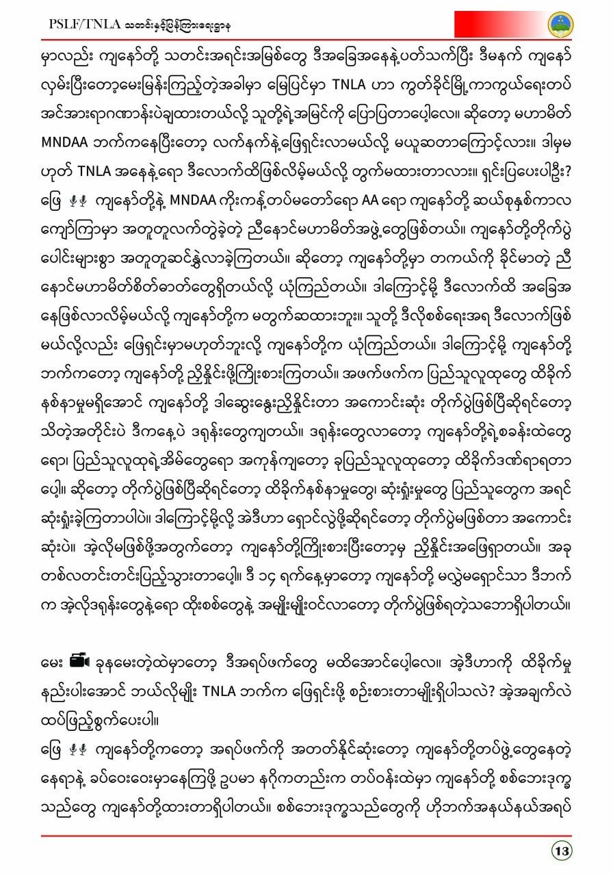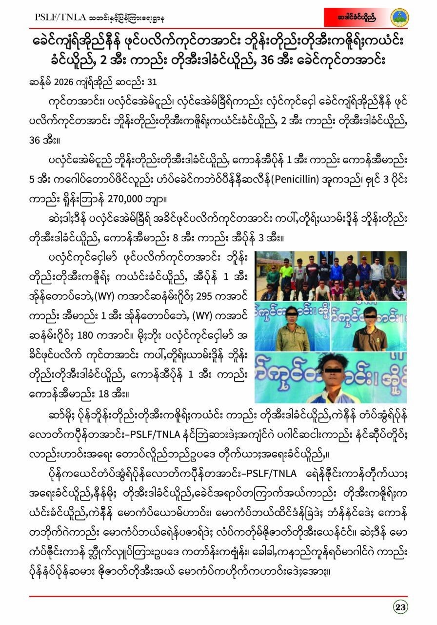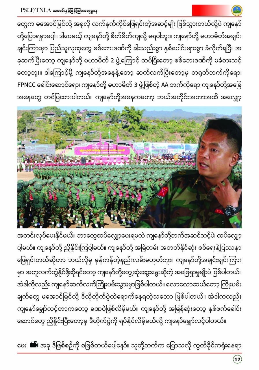 ပလောင်ပြည်နယ်လွတ်မြောက်ရေးတပ်ဦး PSLF/TNLA သတင်းနှင့်ပြန်ကြားရေးဌာန မတ်လထုတ်စာစောင် တအာင်းပြည်၊ ဧပြီ၊ ၂၀၂၆ခုနှစ်