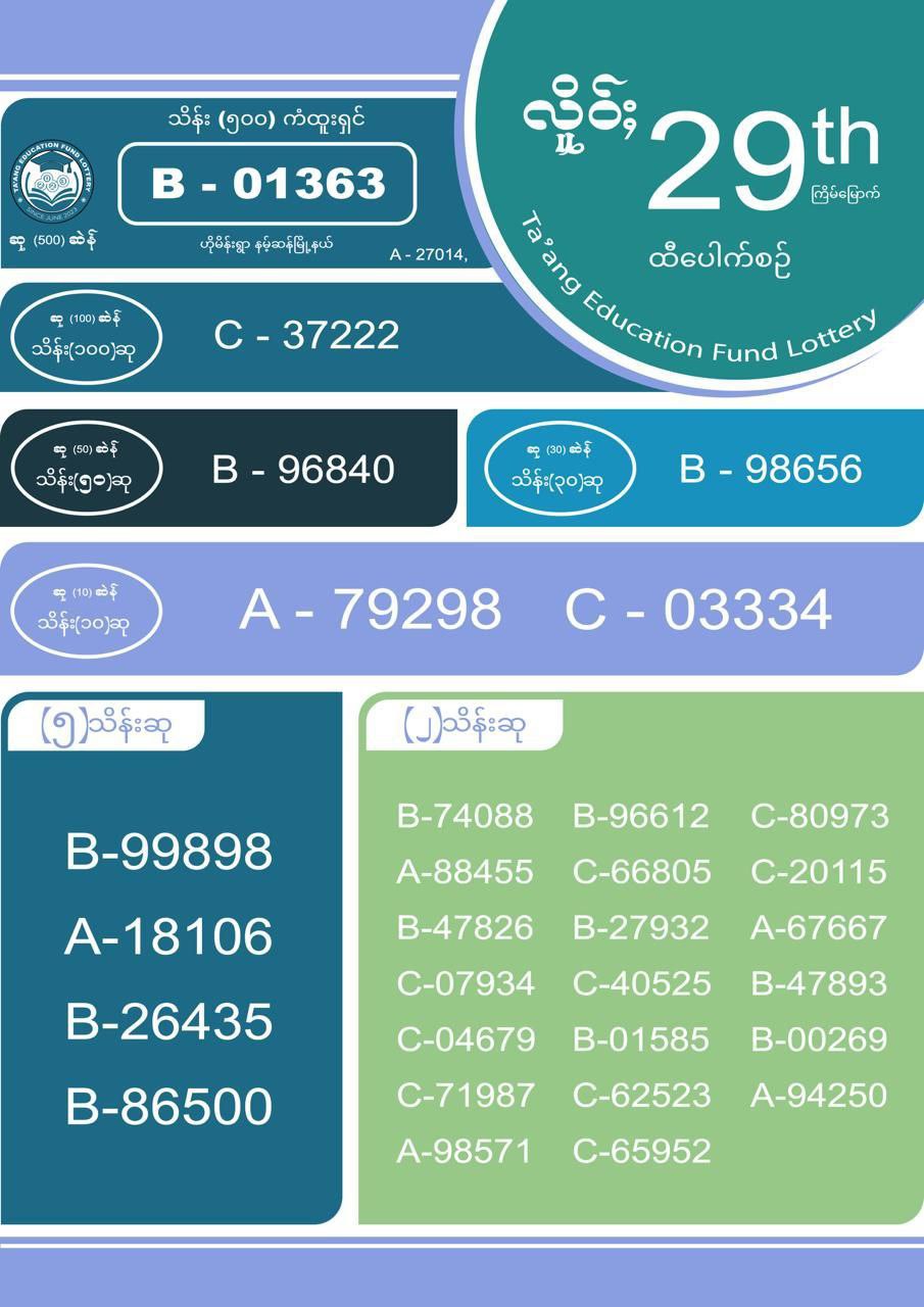 အက္ခရာ ဆုဒါင်း(500)ဆဲန် မိုႈ (B-01363)၊ ဆဲႈဒါႇ ဆု(500)ဆဲန် အ်ုန်တောပ် ဆု(100)ဆဲန် (1)ဆု၊ ဆု(50)ဆဲန် (1)ဆု၊ ဆု(30)ဆဲန် (1)ဆု၊ ဆု(10)ဆဲန် (2)ဆု၊ ဆု(5)ဆဲန် (4)ဆု ၊ ဆု(2)ဆဲန် (20)ဆု၊ ဆဲႈဒါႇဒီန် ချဒဲႈဟာဝ်းဘိုး အက္ခရာဆုဂဏန်းအီကနှေရ်ရဘံန်း(4)ပိုင် တဆု(500)ဆဲန် ကာည်း အီအာဝ်ကနှေရ် အက္ခရာ တဆု(100)ဆဲန်ကဲနီန်။